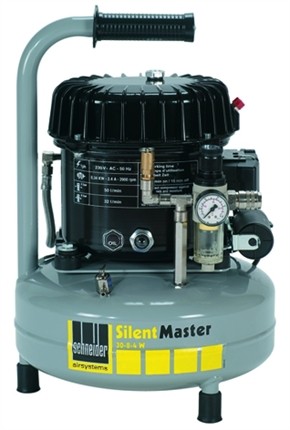 Der Kolbenkompressor SilentMaster von Schneider airsystems ist aufgrund der Spezial-Schalldämmung besonders geräuscharm, Diese trag- bzw. fahrbare Kompressorreihe eignet sich daher ideal für Einsätze, die besonders geräuscharm vonstatten gehen sollen - z.B. wenn es keinen separaten Kompressorraum gibt